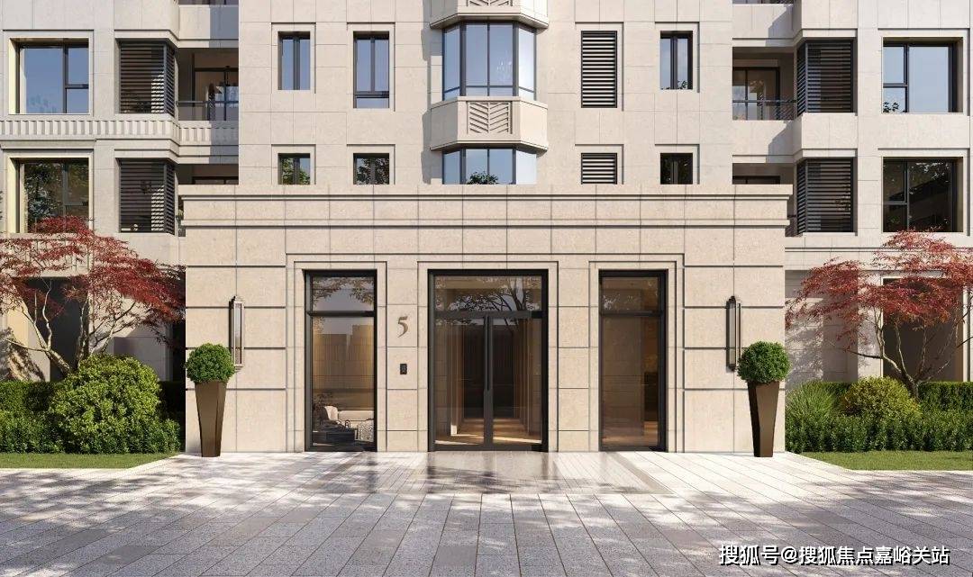 建筑立面采用黄金麻石材肌理柔美典雅,又用灵动的线条柔化了石材的坚硬质地,让整个建筑充满现代生活的韵味和质感。